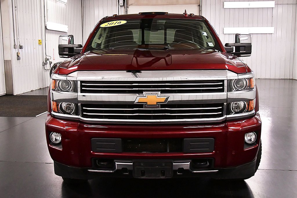 Clean CARFAX. Butte Red Metallic 2016 Chevrolet Silverado 3500HD High Country 4WD Allison 1000 6-Speed Automatic This 2016 Chevrolet Silverado 3500HD High Country in Butte Red Metallic features: Odometer is 6385 miles below market average! *HIGH COUNTRY*, *DURAMAX DIESEL*, *MOONROOF*, *CLEAN CARFAX*, *WE TRADE / FINANCE TRUCKS*, 110-Volt AC Power Outlet, 150 Amps Alternator, 3.73 Rear Axle Ratio, 4.2 Diagonal Color Display Driver Info Center, Auto-Dimming Inside Rear-View Mirror, Bright Sill Plates, Chrome Bodyside Moldings, Chrome Door Handles, Chrome Power-Adjustable Heated Outside Mirrors, Color-Keyed Carpeting Floor Covering, Deep-Tinted Glass, Digital Steering Assist, Driver & Front Passenger Visors, Driver Alert Package, Dual-Zone Automatic Climate Control, Duramax Plus Package, Electric Rear-Window Defogger, Electronic Shift Transfer Case, Engine Block Heater, EZ-Lift & Lower Tailgate, Forward Collision Alert, Front Halogen Fog Lamps, Lane Departure Warning System, Leather Wrapped Heated Steering Wheel, Leather-Wrapped Steering Wheel, Manual Tilt-Wheel/Telescoping Steering Column, Navigation System, OnStar Guidance Plan For 6 Months, OnStar w/4G LTE, Power Adjustable Pedals, Power Sliding Rear Window w/Defogger, Power Windows, Preferred Equipment Group 3LZ, Rear 60/40 Folding Bench Seat (Folds Up), Rear Vision Camera w/Dynamic Guide Lines, Rear Wheelhouse Liners, Remote Keyless Entry, Remote Locking Tailgate, Remote Vehicle Starter System, Single-Slot CD/MP3 Player, Single-Stage Driver & Front Passenger Air Bags, SiriusXM Satellite Radio, Spray-On Pickup Box Bed Liner w/Bowtie Logo, Standard Suspension Package, Steering Wheel Audio Controls, Trailering Equipment, Unauthorized Entry Theft-Deterrent System, Universal Home Remote, Wireless Charging.