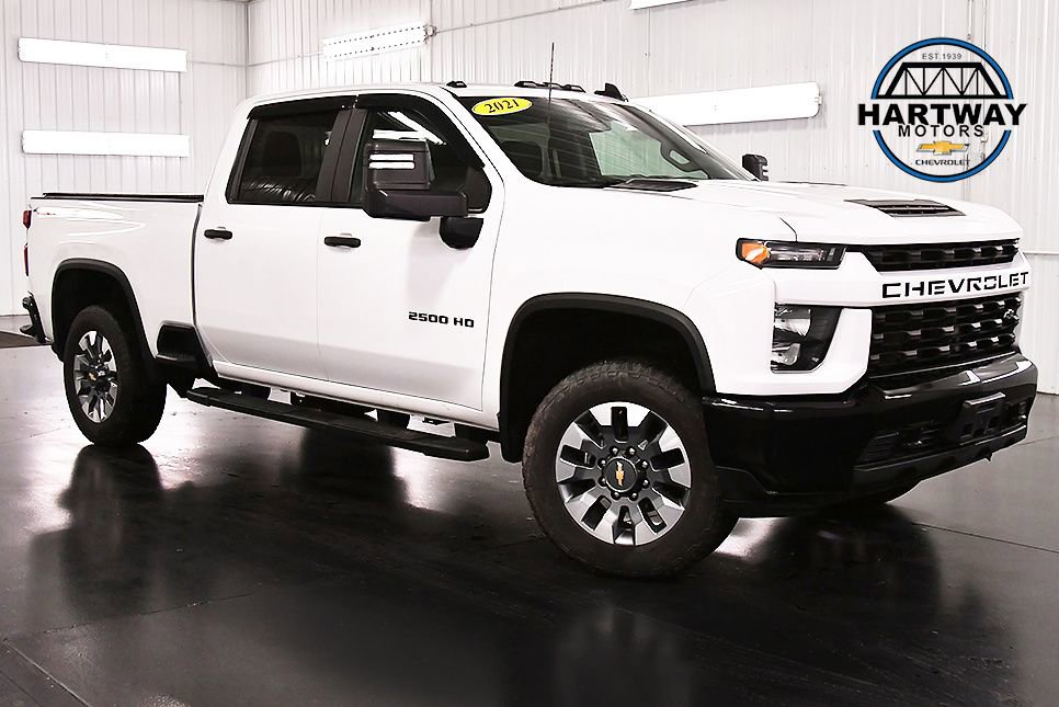 Recent Arrival! Clean CARFAX. Summit White 2021 Chevrolet Silverado 2500HD Custom Dark Essentials 4WD 6-Speed Automatic This 2021 Chevrolet Silverado 2500HD Custom in Summit White features: Odometer is 34064 miles below market average! *DARK ESSENTIALS*, *GOOSENECK / 5TH WHEEL PACKAGE*, *6.6L V8 GAS*, *CUSTOM VALUE PACKAGE*, *CLEAN CARFAX*.