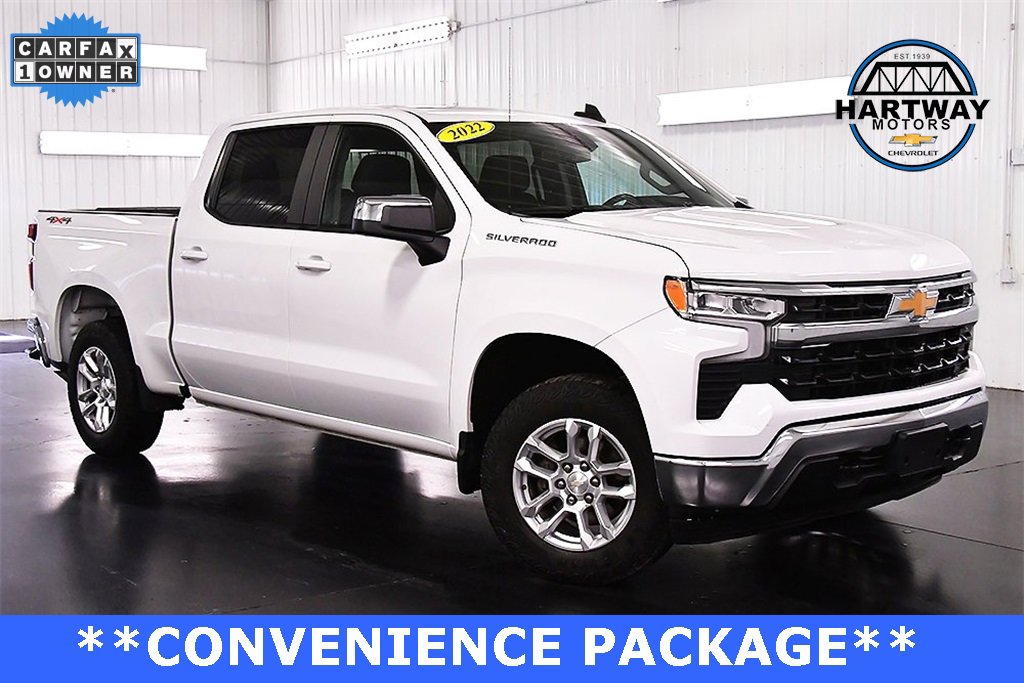Recent Arrival! CARFAX One-Owner. Clean CARFAX. Summit White 2022 Chevrolet Silverado 1500 LT 4WD 8-Speed Automatic This 2022 Chevrolet Silverado 1500 LT in Summit White features: